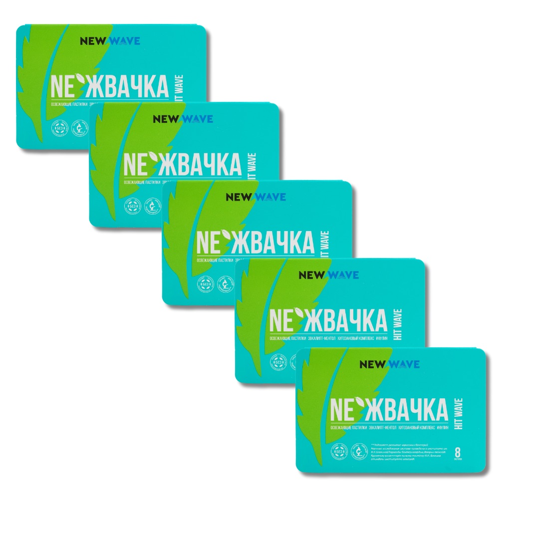 Освежающие пастилки «NE’Жвачка» со вкусом эвкалипта и ментола из серии инновационных продуктов «HIT WAVE» с пребиотиками и хитозановым комплексом — это лучшая альтернатива жевательной резинке и конфетам для длительной свежести дыхания, поддержания здоровья зубов и полости рта!