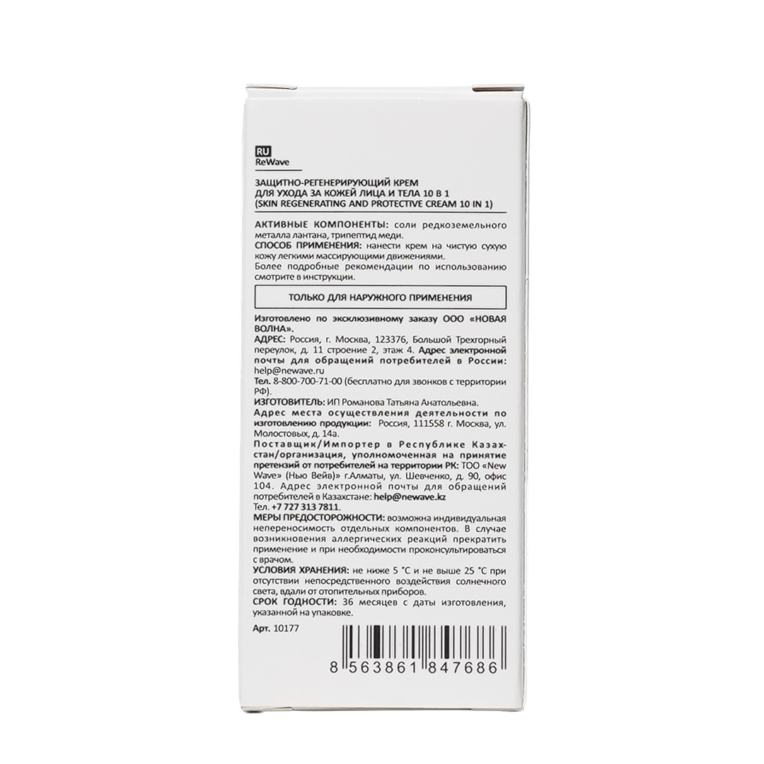 Многофункциональный «Защитно-регенерирующий крем для ухода за кожей лица и тела 10 в 1» с уникальными активными компонентами: редкоземельным металлом лантаном и трипептидом меди, обеспечивает комплексный уход за кожей лица, рук и тела и ее пролонгированную защиту от различного токсического и повреждающего воздействия неблагоприятных факторов.